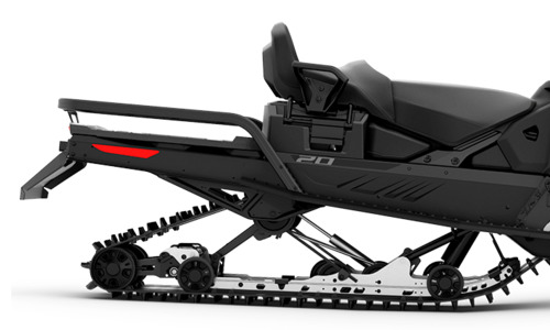 Передняя подвеска, в отличие от снегоходов линейки Expedition, телескопическая. Она имеет минимум выступающих элементов, за счет чего меньше риск задеть препятствие, а также лучше проходимость на тяжелом бездорожье – снегоход не гребет перед собой снег рычагами.