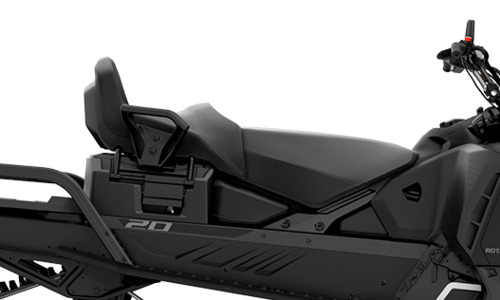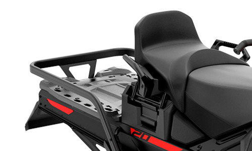 Снегоход имеет модульное сидение пассажира с ручками безопасности, при необходимости - сидение можно убрать, а под ним располагается закрытое багажное отделление.