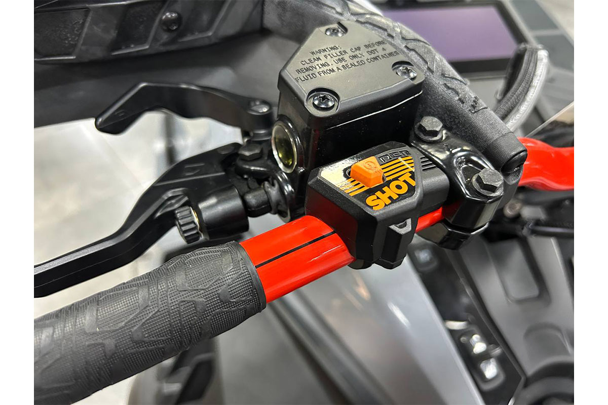 - Руль с J-образными рукоятками, горной стропой и гибкими ветрозащитными щитками.