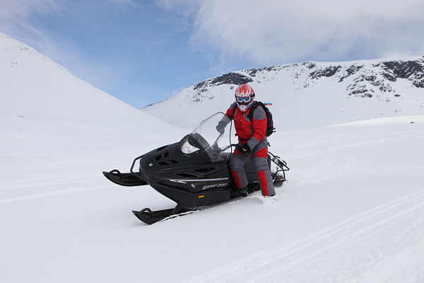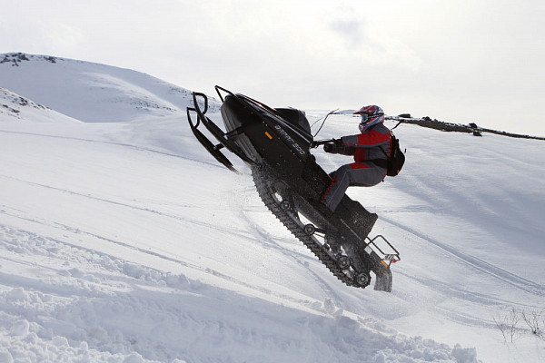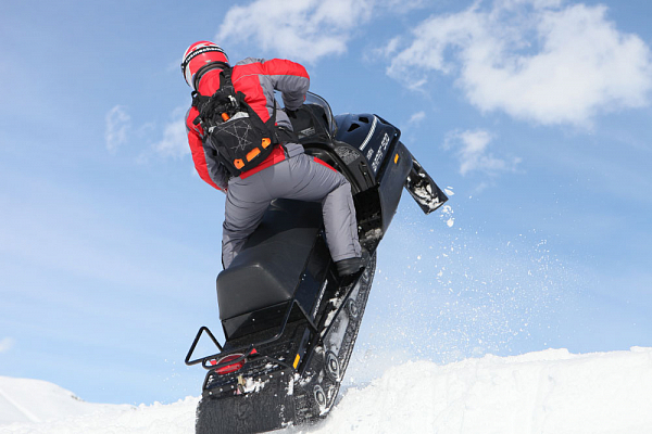 Из особенностей модели стоит отметить высокий руль, позволяющий активно маневрировать в положении стоя. У снегохода двухуровневое сидение и обогрев рукояток руля с курком газа. Высокое ветровое стекло с мощной фарой головного света.