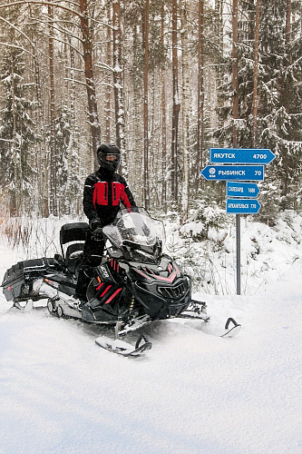 Эргономика нового снегохода просматривается в каждой детали и обеспечивает удовольствие от вождения. Сидение может быть двухместным или одноместным с большим багажным пространством. Фактура материала сиденья кажется настолько мягкой, что появляется желание прикоснуться, ощутить его тепло. Высокое стекло защитит вас от встречных холодных потоков: ветер обойдет вас стороной. Комфорта добавит подогрев курка газа, пассажирских и водительских рукояток. В вечернее и ночное время мощная светодиодная фара создаст эффект ровного дневного освещения, улучшит видимость и обзор объектов. Привлекает внимание интересное исполнение фары, она соразмерна корпусу машины и придает ей индивидуальность. Общий контур, четкие боковые линии машины создают образ динамичного и стильного снегохода — туриста, готового вместе с вами прокладывать новые маршруты, осваивать любые пространства. Повсюду, где есть снег.