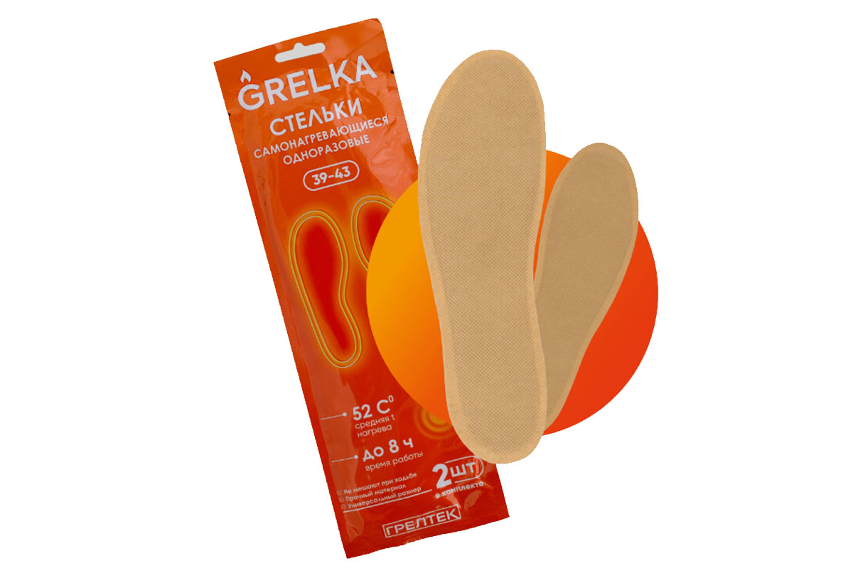 Стельки–грелки — одноразовые самонагревающиеся грелки для ног в виде стелек для обуви. Благодаря специальной форме и компактным размерам, они легко вкладываются внутрь сапог, валенок, рабочих ботинок и другой обуви. Выделяют тепло в течение 8–10 часов, согревая пальцы и стопы даже в самую суровую непогоду. Данный аксессуар станет отличным дополнением к снаряжению для зимней рыбалки, охоты или других зимних активностей.