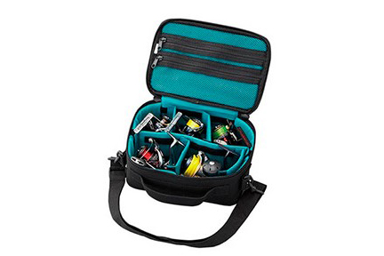 - Сумка оснащена съемными перегородками на липучках, которые регулируются в зависимости от размера катушки;