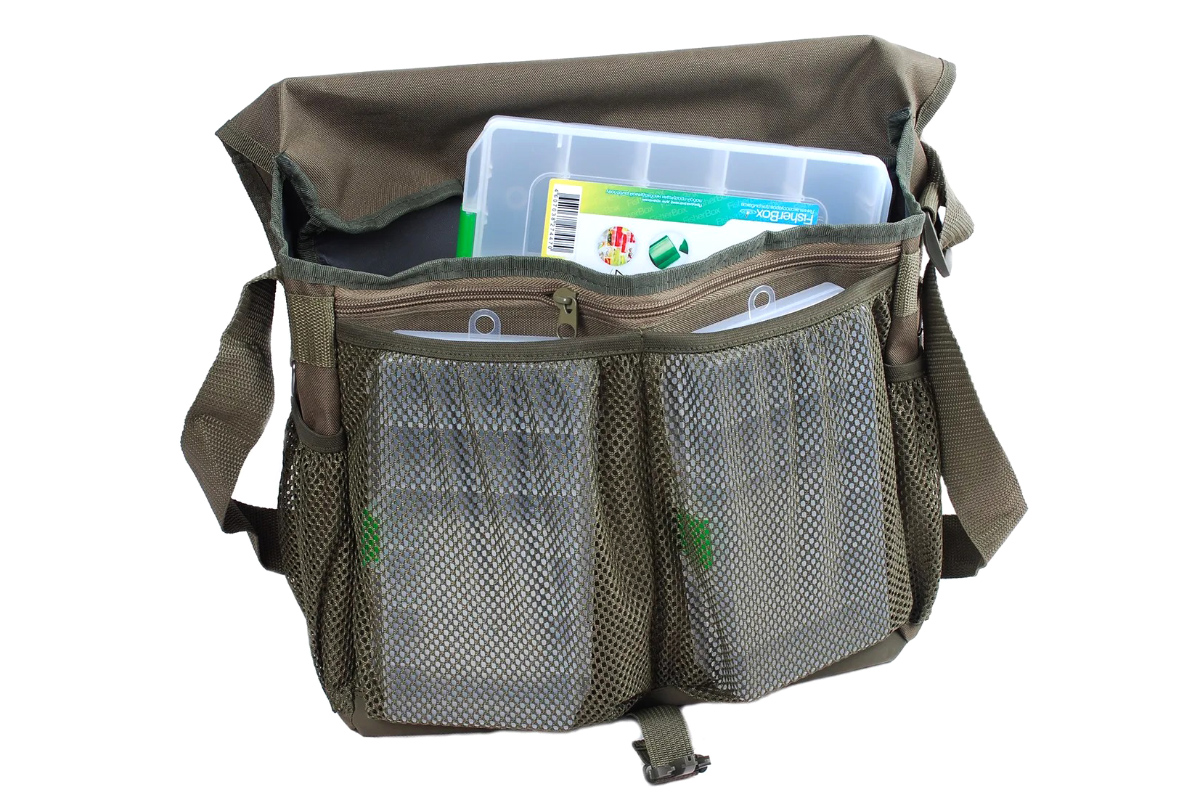 Сумка Fisherbox C104 специально продумана так, чтобы рыболову было удобно ее носить, но при этом она не мешала как при ходьбе, так и во время ловли. Прорезиненное, легко моющееся дно, надёжно защищает содержимое сумки в дождливую погоду.