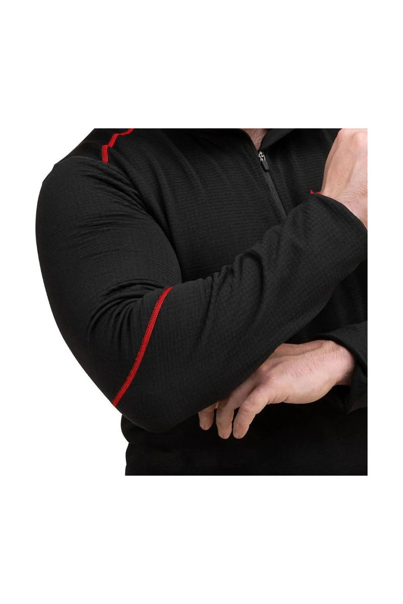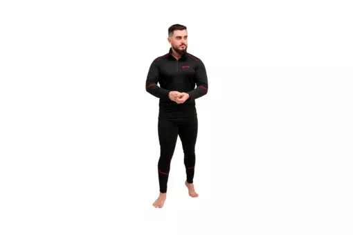Мужской комплект термобелья для низких температур. Он рассчитан на активное использование в холодную погоду. Комплект состоит из фуфайки с длинным рукавом и кальсон. Материал представляет собой синтетическую ткань с добавлением эластана. Крой изделий анатомический. Швы на изделиях плоские. Термобелье позиционируется для многослойного ношения.