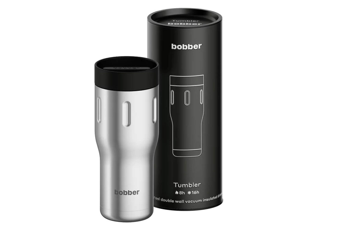 Термокружка Bobber Tumbler - кружка для горячих и холодных напитков. Корпус выполнен из нержавеющей стали. Внутренняя колба бесшовная. Крышка имеет силиконовые уплотнители. Горлышко широкое. На корпусе есть выемки. Изделие помещается в автомобильный подстаканник.