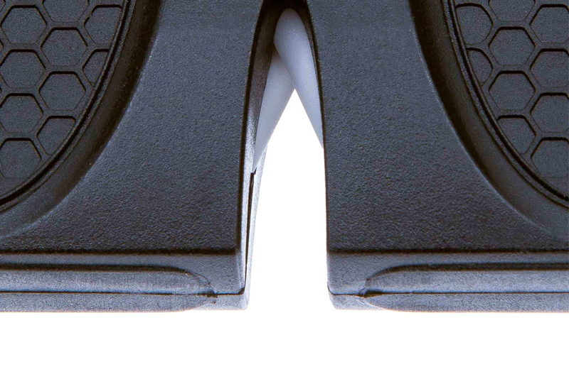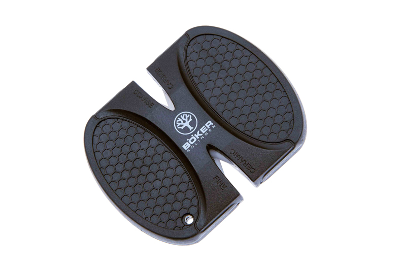 Легкая и компактная точилка для ножей Boker оборудована специальными опорными накладками красного цвета из резины. Точилка двусторонняя. С одной стороны карбидный слот, предназначенный для более быстрого съема материала и заусенцев с режущей кромки, а с другой керамический слот, необходимый для последующей мягкой обработки и правки клинка.