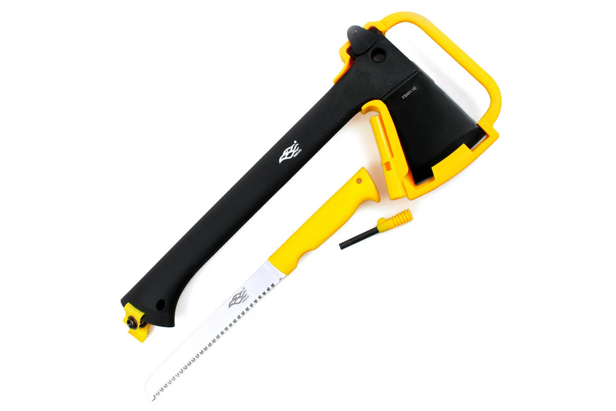 Топор Firebird FSA01 черно-желтый — это не просто топор, а многофункциональный набор инструментов, включающий также пилу и огниво. Этот комплект станет незаменимым спутником для любителей отдыха на природе, позволяя не только заготовить дрова нужного размера, но и разжечь костер.