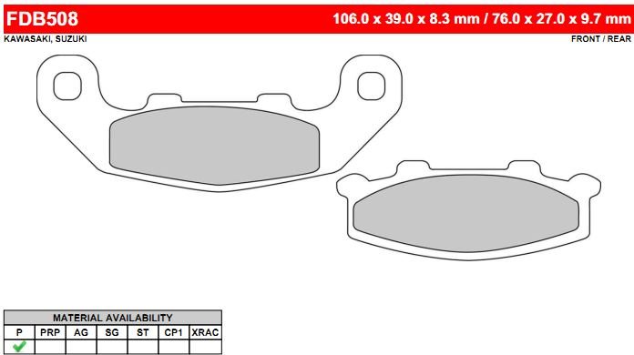 Тормозные колодки FERODO 580-508, FDB 508 P обеспечивают высокую производительность и надежность для различных моделей мотоциклов Kawasaki и Suzuki. Их качество и долговечность делают их идеальным выбором для любых условий эксплуатации.