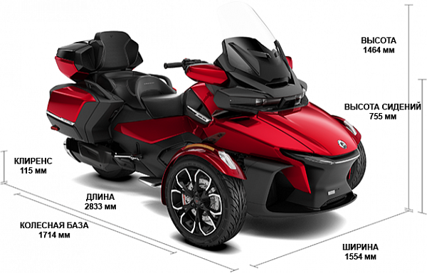 Туристический родстер премиум-класса Spyder RT LTD обладает превосходной эргономикой, высококлассной отделкой и богатой комплектацией. Он подарит своему владельцу чувство уверенности за рулем и комфортное путешествие. Трицикл оборудован высокопроизводительным трехцилиндровым двигателем Rotax, развивающим мощность 115 л. с.