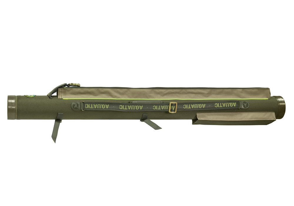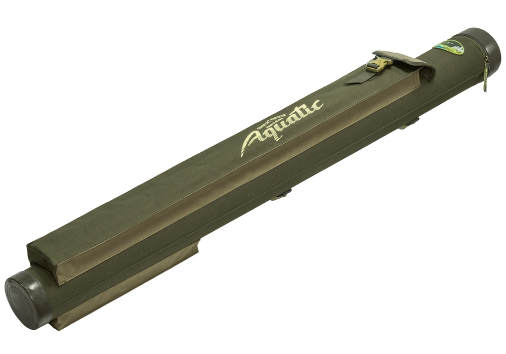 Жесткий тубус Aquatic диаметром 110 миллиметров сделан из непромокаемой ткани и жесткой пластиковой трубы. Тубус данной модели снабжен дополнительным карманом для хранения и транспортировки подсака, багра, стоек для удилищ и прочего снаряжения. Тубус Aquatic ТК-110-1 предназначен для надежной защиты удилищ и спиннингов. В данный тубус вмещается до 7 спиннингов или удилищ. Торцы тубуса закрыты пластиковыми колпаками. На крышке тубуса применяется прочная высококачественная молния.