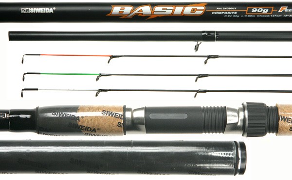 SWD BASIC series. Бюджетная серия фидерных удилищ выполненная из карбона и стекловолокна - композита. Характеризуется средне-быстрым строем и невысокой ценой. Рекомендуется для ловли на реках со средним и быстрым течением, а также в водоемах со стоячей водой. Оснащены 3-мя сменными хлыстиками из стекловолокна, которые выбираются исходя из веса кормушки. Удилища комплектуются высококачественными кольцами SIC и комбинированной ручкой из пробки и неопрена. Выпускаются в модификациях: до 90 г, до 120 г, до 150 г и до 180 г при длине от 3,3 до 3,9 м.