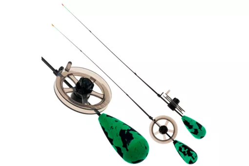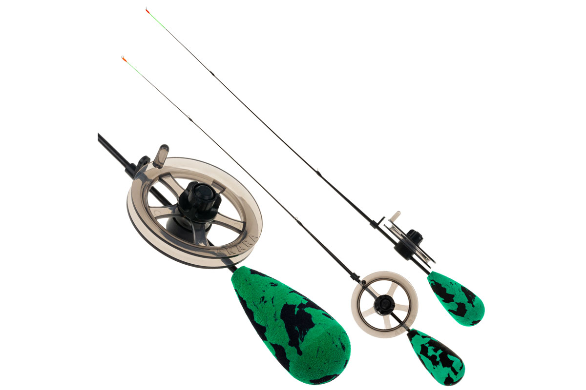 Тонкий хлыст из стеклопластика выполняет функцию сигнализатора поклевки. Конструкция с открытой катушкой направлена на снижение общего веса снасти.