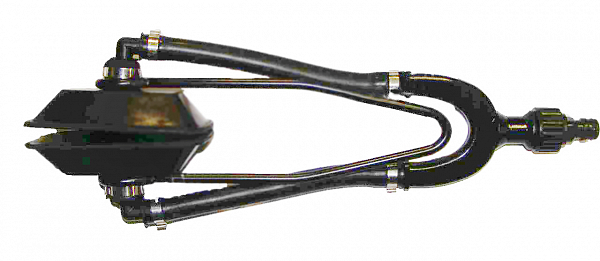 Устройство для промывки охлаждающей системы подвесных лодочных моторов. Подвод воды осуществляется через приёмный штуцер расположенный впереди промывочного устройства, что позволяет осуществлять подачу воды в обе решётки охлаждения одновременно. Устройство крепится на решётку охлаждения и удерживается U образной пружиной. Страна производитель: Тайвань.
