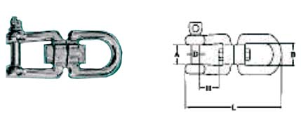 Вертлюг крепления якоря к якорной цепи или тросуМатериал: нержавеющая стальСтрана-производитель — Китай Нагрузка 0,10 тонн, Вес 0,040 кг D = 5 мм, L = 60 мм, H = 11,5 мм, B = 13 мм, A = 10 мм