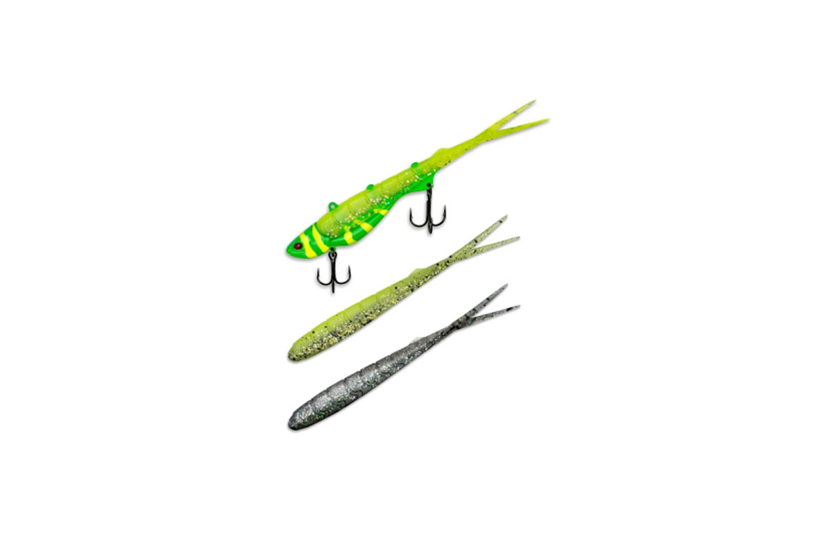 - Двухсоставная гибридная система: жесткое тело со сменным силиконовым хвостом.
