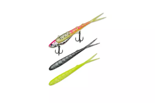 Особенности конструкции: Приманка имеет двухсоставную модульную конструкцию. Силиконовый элемент подлежит замене. В ассортименте представлены сменные хвосты с ультрафиолетовым свечением.