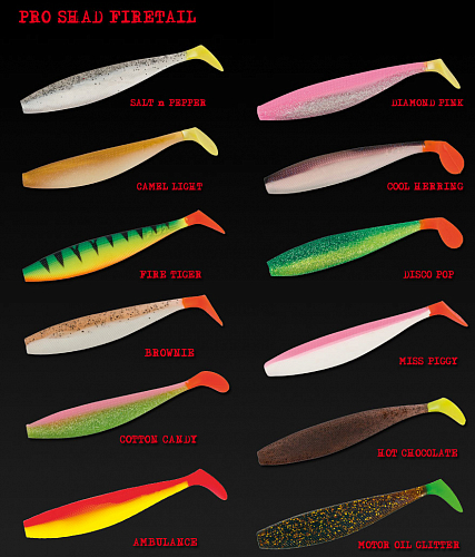 Приманки серии Pro Shad Firetails. Многочисленные охотники за щукой с нетерпением ожидали возвращения горячо любимой приманки Rage Pro Shad. Успешная и усовершенствованная версия приманки Pro Shad с тонким, достаточно легким телом как будто бы парит под водой, не замечая ничего вокруг. Приманка Pro Shad Firetails предназначена для забросов на дальнее расстояние, не вызывая усталости рук рыболова на протяжении достаточно долгого промежутка времени. Серия Pro Shad Firetails изготовлена из сверхпрочного силикона, который придает приманке законченный совершенный вид. Вес, г: 17 Длина: 140 мм