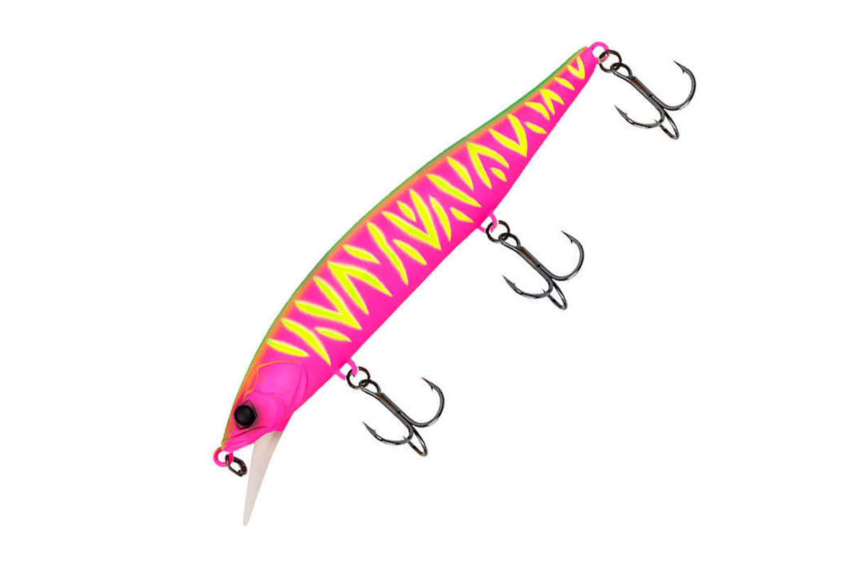 Модель относится к классу суспендеров с нейтральной плавучестью. Длина корпуса составляет 110 мм при весе 16.3 г. В конструкцию интегрирована система дальнего заброса. Рабочий горизонт заглубления находится в диапазоне 1.2 – 1.8 метра. Расцветка выполнена в матовом исполнении с сочетанием розовых, салатовых и темных оттенков.