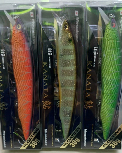 - Длинное прогонистое тело воблера Megabass Kanata изготовлено из фирменного пластика, ударопрочного и долговечного. Можно смело рассчитывать на его использование в течение нескольких успешных рыболовных сезонов;