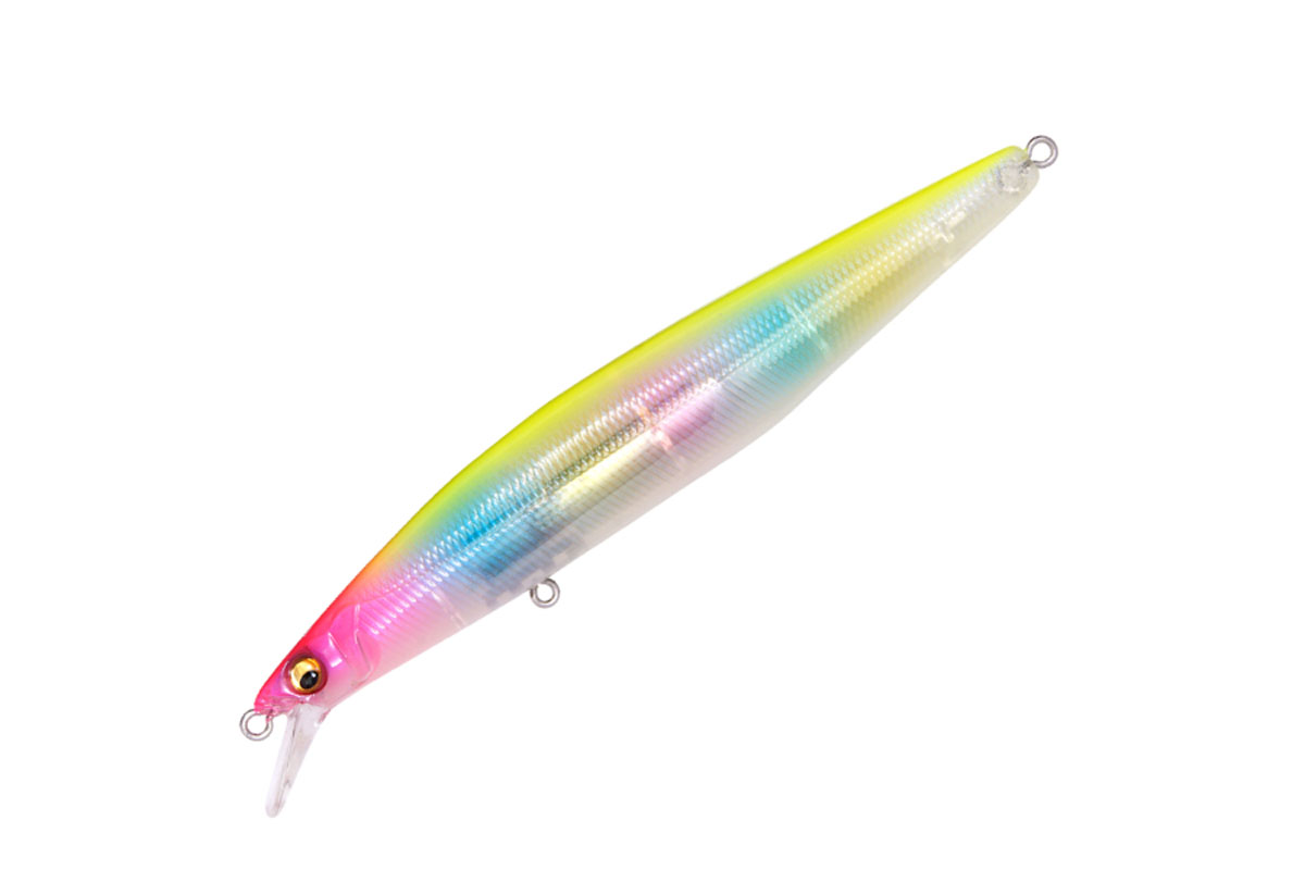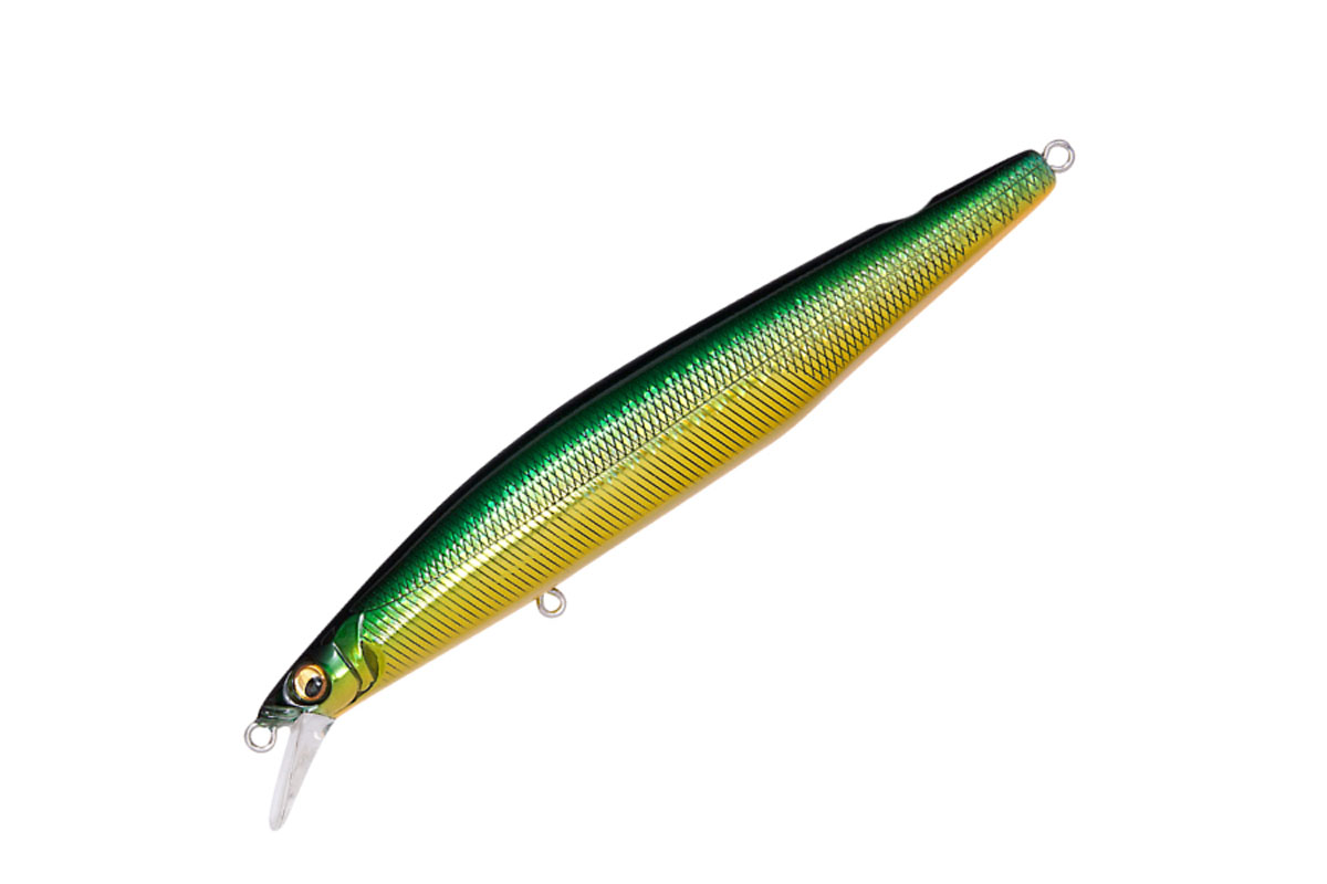 Плавающий воблер класса минноу с рабочим горизонтом до 1.4 метра. Модель создана для морской рыбалки и демонстрирует результативность в пресной воде. Конструкция рассчитана на стабильную работу при сильном течении и волнении. Приманка проявляет активную игру с момента касания водной поверхности. Корпус оснащен системой для смещения центра тяжести. Геометрия и балансировка способствуют повышенной дальности заброса. Бесшумная камера не создает дополнительных акустических эффектов.