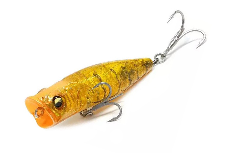 Серия подойдет для облавливания поверхности поросших мелководий, где любят охотиться окунь и щука. Изначально поппер создавался для морской рыбалки. Для того, чтобы обеспечить надежную подсечку, тройники имеют подвижное крепление. Потому количество сходов с таким воблером будет минимальным.