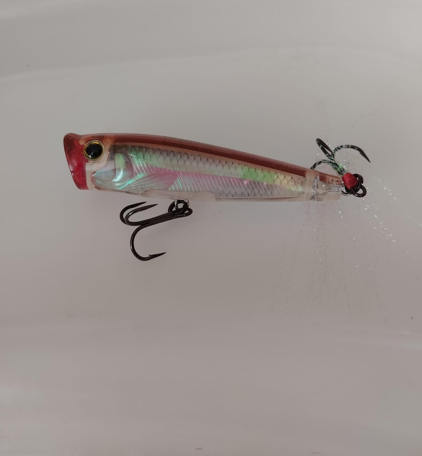 очень прикольный Поппер. классные эмоции испытал с ним на рыбалке! окунь очень хорошо на него выходит, атаки злые. очень хорошо провоцирует рыбу на атаку, всем рекомендую!