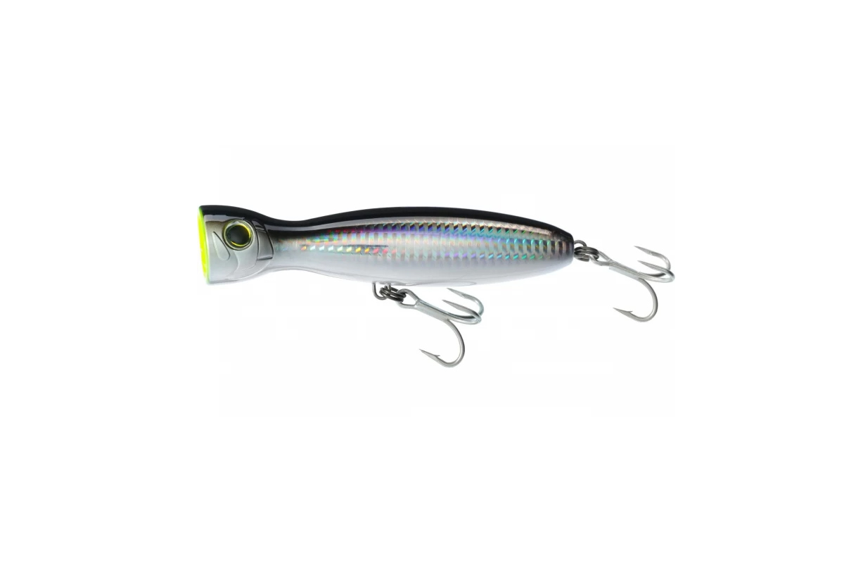 Для морской ловли таких рыб как каранкс или тунец очень часто используют большие попперы, которые создают очень много шума и брызг и именно этот фактор очень нравится многим хищникам, обитающим в солёной воде. Yo-Zuri Mag Popper – серия попперов, которые ориентированы на агрессивную рывковую проводку и демонстрируют феноменальные полётные качества. Эти приманки обладают серьёзным лобовым сопротивлением, поэтому снасть должна иметь серьёзный запас мощности и соответствующую жёсткость. Так как морские рыбы намного сильнее пресноводных, тройники и заводные кольца на приманке – повышенной прочности.