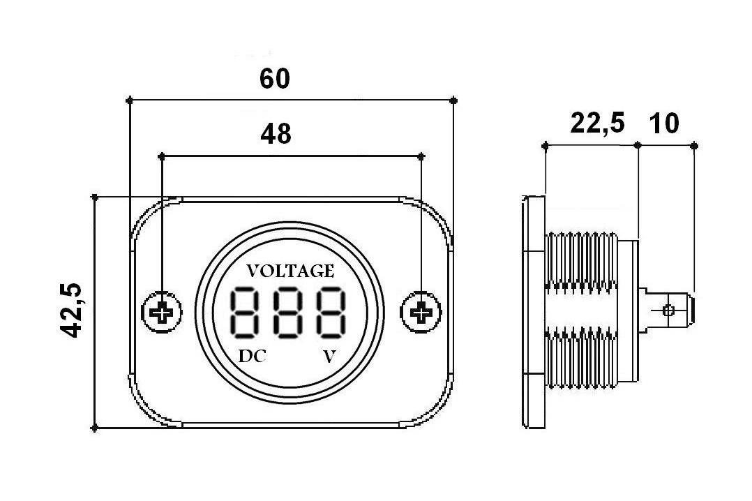Водонепроницаемый цифровой вольтметр изготовлен из ударопрочного пластика, снабжен внешней панелью для крепления на приборной панели. Служит для контроля за напряжением в электрической цепи судна.