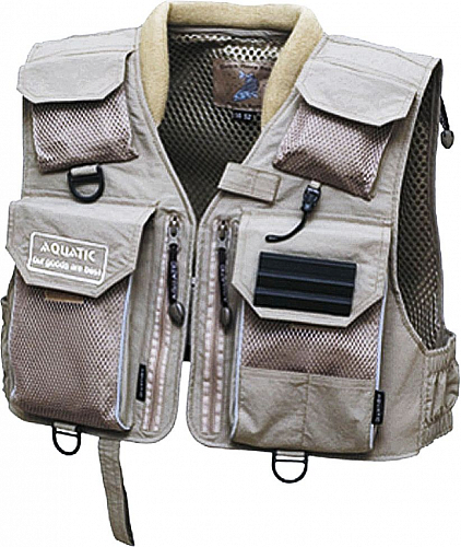 Жилет Aquatic рыболовный Ж-01 - нахлыстовый рыболовный жилет. 13 карманов + элемент для быстрого фиксирования мушек на верхнем клапане жилета. 3-D вязаный ворот. Разработан специально для любителей нахлыста и ультралайта.